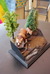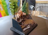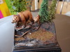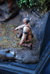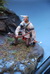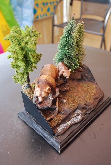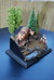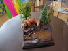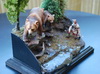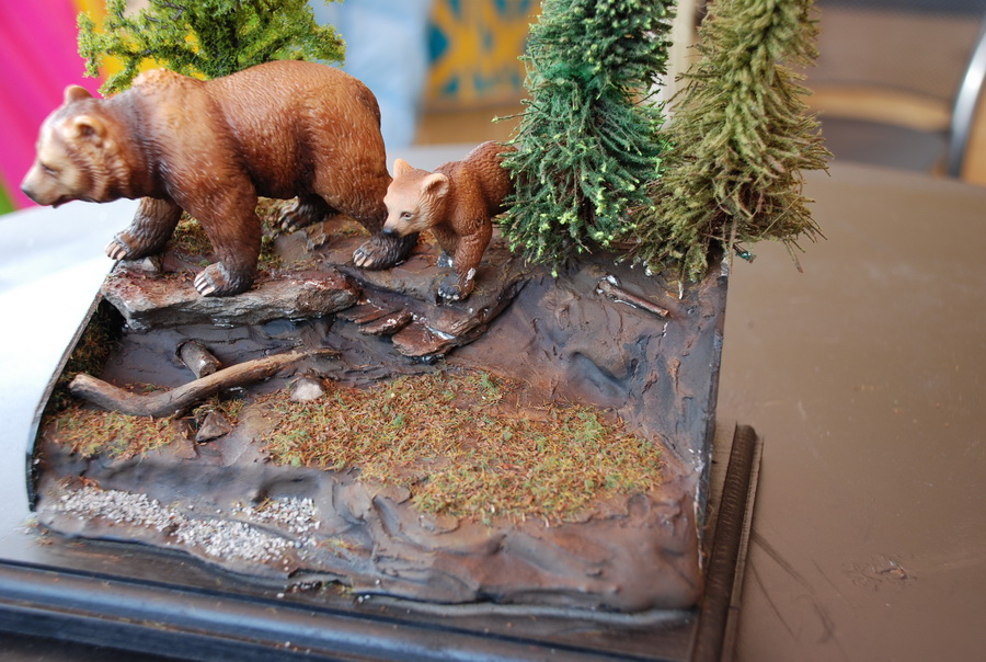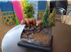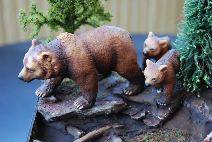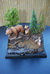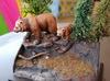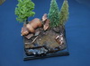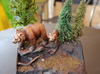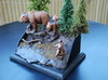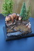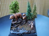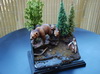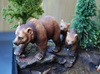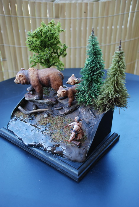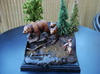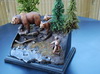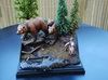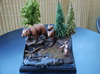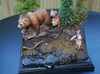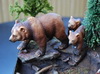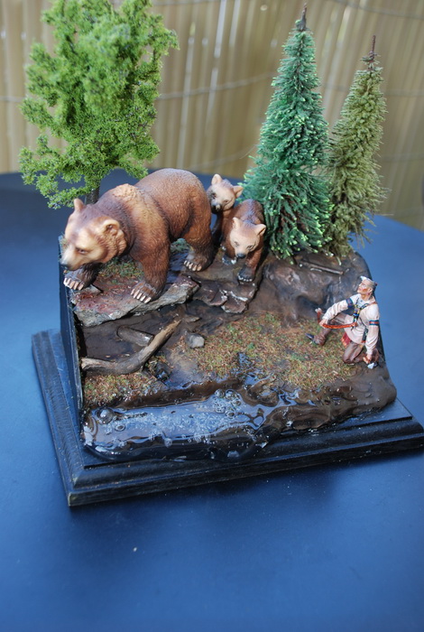Petite scène montrant un indien lors d'une partie de chasse. Il croise sur son chemin une femelle ours accompagnée de ses deux oursons.