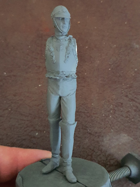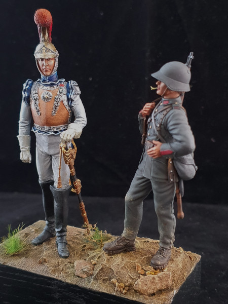 Ferdinand Lariboisière, 1792-1812, fils du Général Jean Ambroise Baston comte de Lariboisière, lieutenant au 1er carabiniers à cheval. Commande pour le Château de Morges et ses musées. Elle est mise en "confrontation" avec un soldat Suisse de 1942, dans le but de montrer la différence et l'évolution des uniformes militaires entre la période dite colorée et celle qui l'a remplacée au profit du camouflage mis en place lors de la Première Guerre Mondiale.