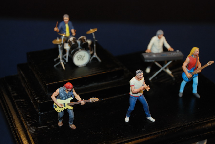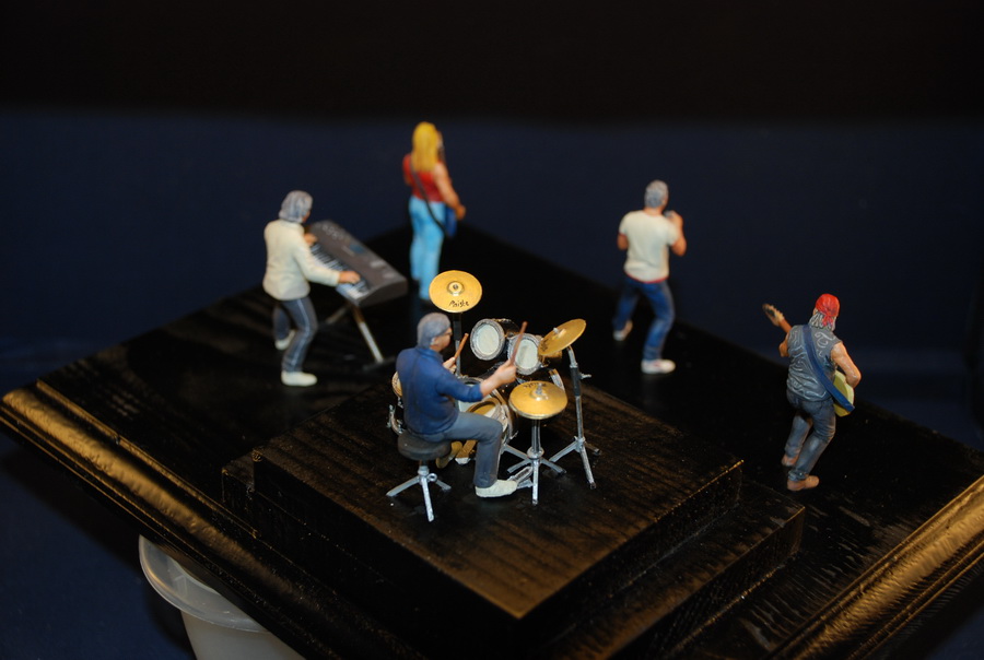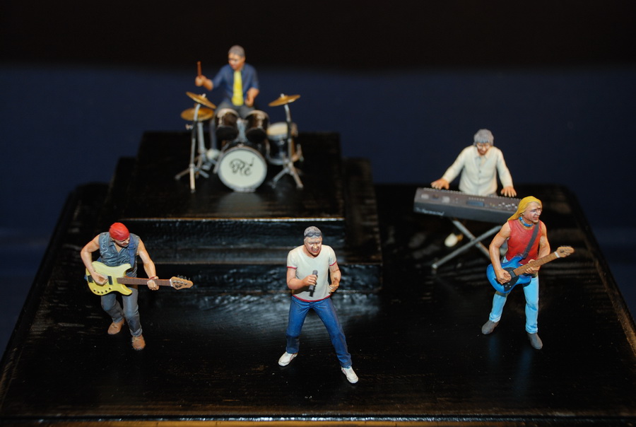 Groupe RE de la gamme Kings of Figurines. Cette scène fait partie d'un ensemble de groupe musicaux que l'on peut peindre selon notre propre imagination. Toutes ressemblances avec des groupes existant ou ayant exlister ne serait que coincidences.