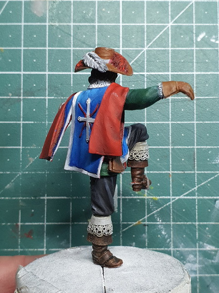 Le corps des mousquetaires de la maison militaire du roi de France est créé en 1622 lorsque Louis XIII dote de mousquets, arme plus puissante que l'arquebuse, une compagnie de chevau-légers de la Garde1, créée par Henri IV. Elle est connue sous le nom de Compagnie des Mousquetaires du Roi. De 1622 à 1629, les mousquetaires dépendent du capitaine-lieutenant des chevau-légers. Le premier occupant du poste en 1622 est Jean de Bérard de Montalet. En 1634, le roi le fait capitaine-lieutenant de la compagnie des mousquetaires, le titre de capitaine revenant à Louis XIII. Le commandement effectif est assuré par Jean-Armand du Peyrer, comte de Tréville. Ce corps est nommé d'abord Compagnie de Mousquetons du Roi, puis des Mousquetaires du Roi. Les mousquetaires sont recrutés uniquement parmi les gentilshommes ayant déjà servi dans les Gardes. L'accès aux mousquetaires, corps d'élite et de parade, proche du roi, représente une promotion. En quittant ses rangs, on est nommé enseigne ou lieutenant2 dans les Gardes ou officier dans les régiments. En l'absence d'école militaire, le passage sous les yeux du souverain permet de vérifier la compétence et la fidélité de chaque homme. Les mousquetaires sont d'abord des combattants à cheval, puis indifféremment à pied ou à cheval. Chaque compagnie utilise donc un porte-drapeau à pied et un porte-étendard à cheval. Ils forment la garde habituelle du roi à l'extérieur, la garde à l'intérieur des appartements royaux étant assurée par les gardes du corps et des gardes suisses. (Source : Wikipedia)