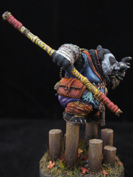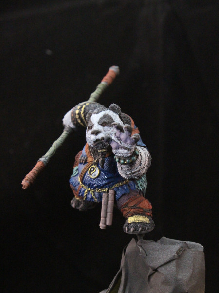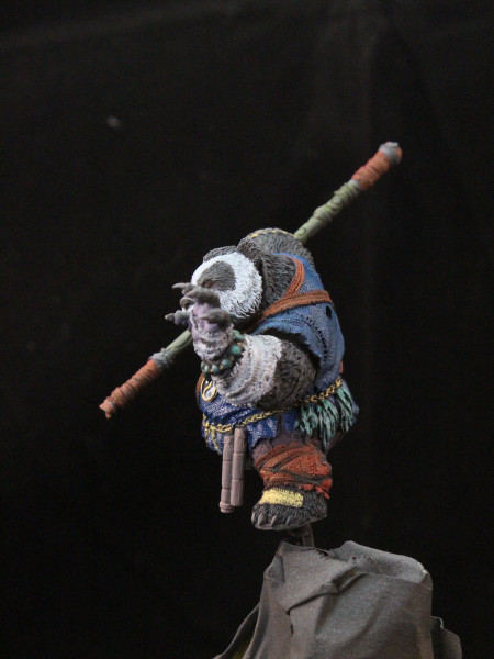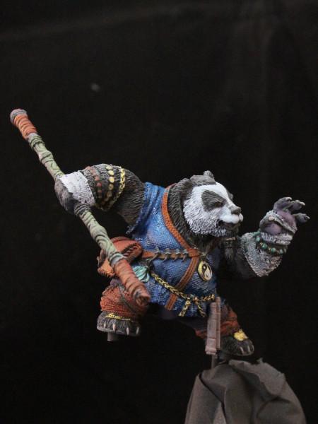 Lorsque les mogu ont asservi les pandarens il y a plusieurs siècles, ce sont les moines qui ont apporté l'espoir d'un avenir apparemment sombre. Empêchés d’utiliser des armes par leurs maîtres esclaves, ces pandarens se sont plutôt concentrés sur l’exploitation de leur chi et l’apprentissage du combat sans arme. Quand l'occasion de la révolution s'est présentée, ils étaient bien entraînés pour se libérer du joug de l'oppression. Ce personnage est tiré de l'univers Warcraft